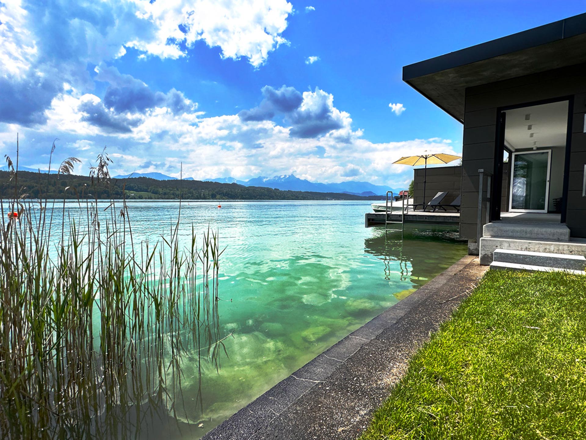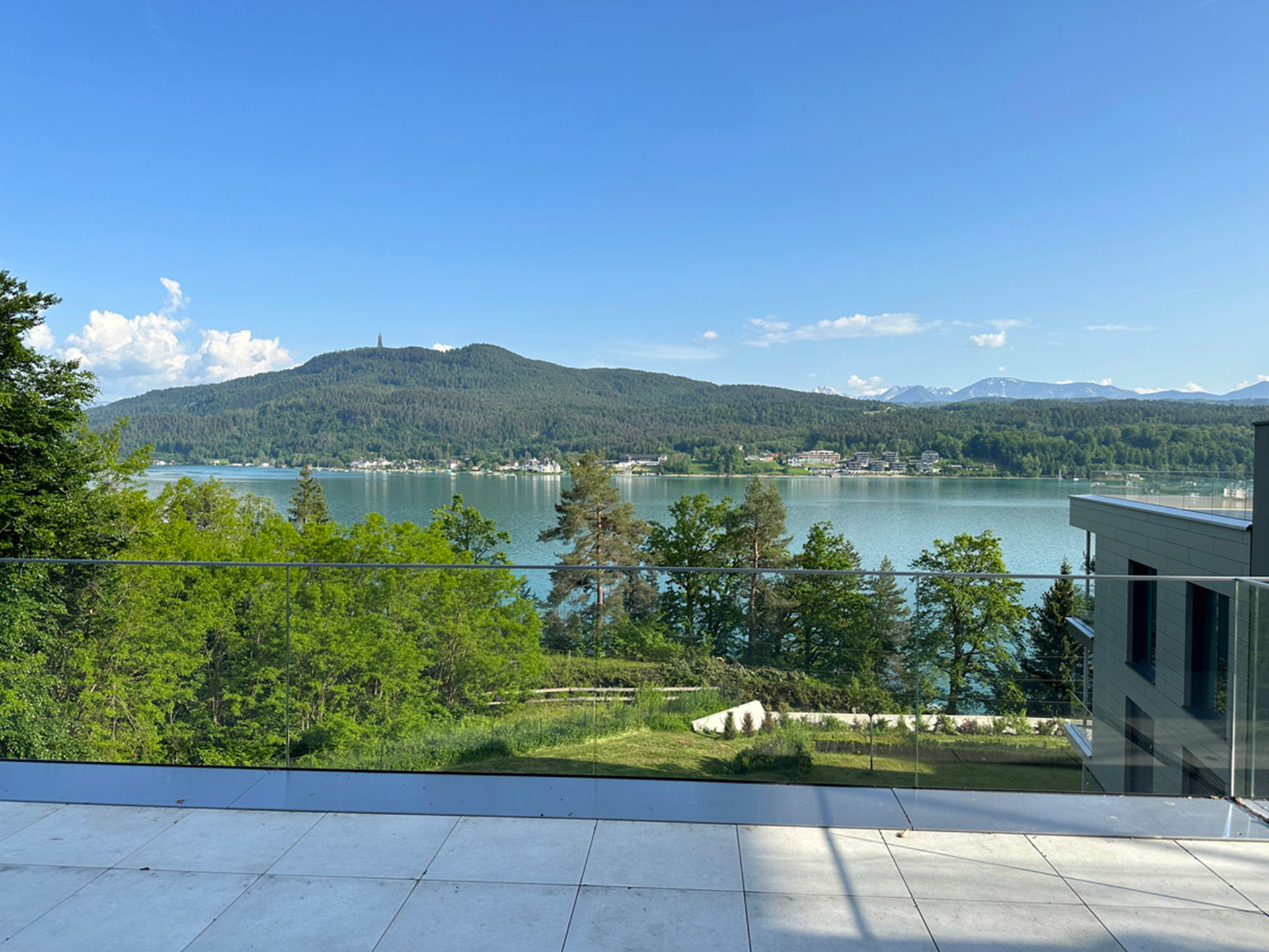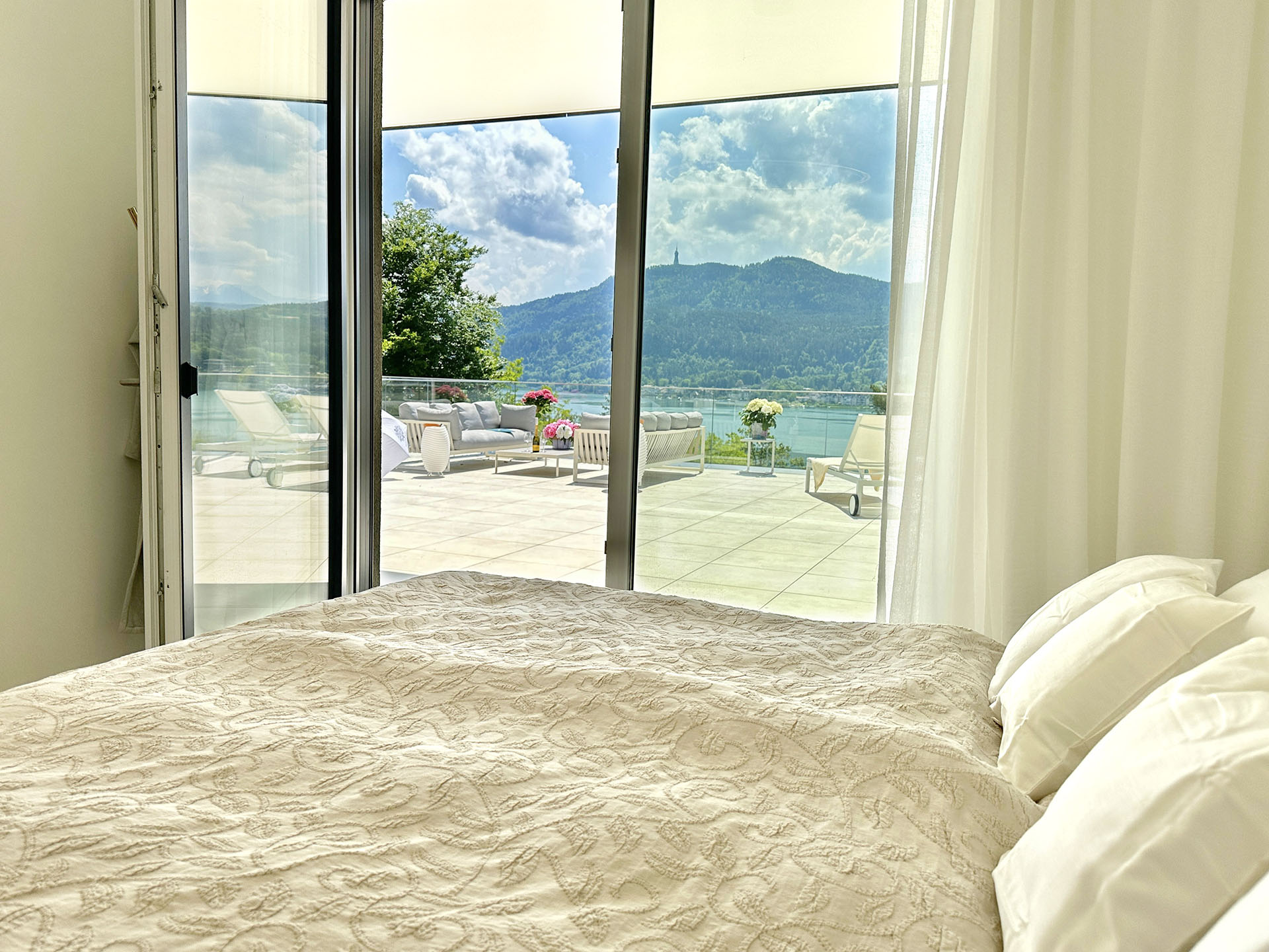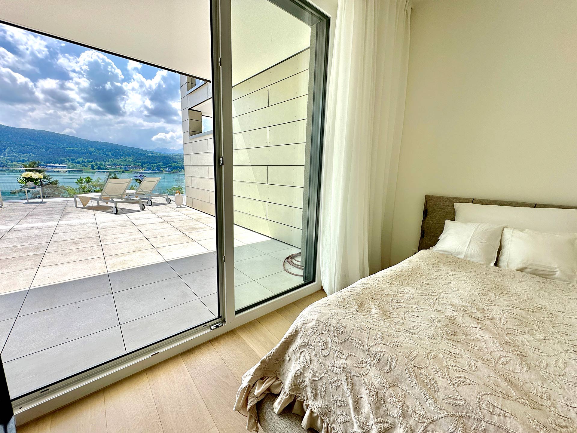 Von Ihrem Schlafzimmer, dem Badezimmer und auch vom Ihrem Wohnessraum genießen Sie den herrlichen Blick nach Süden auf den See.