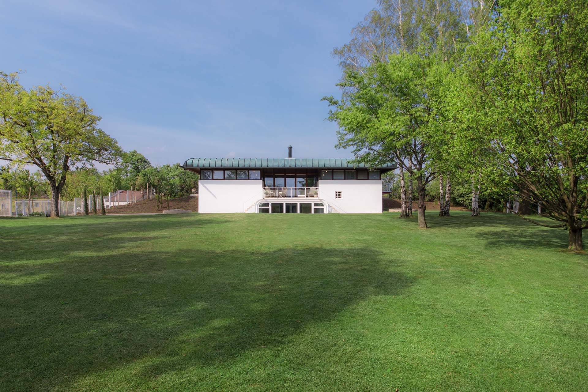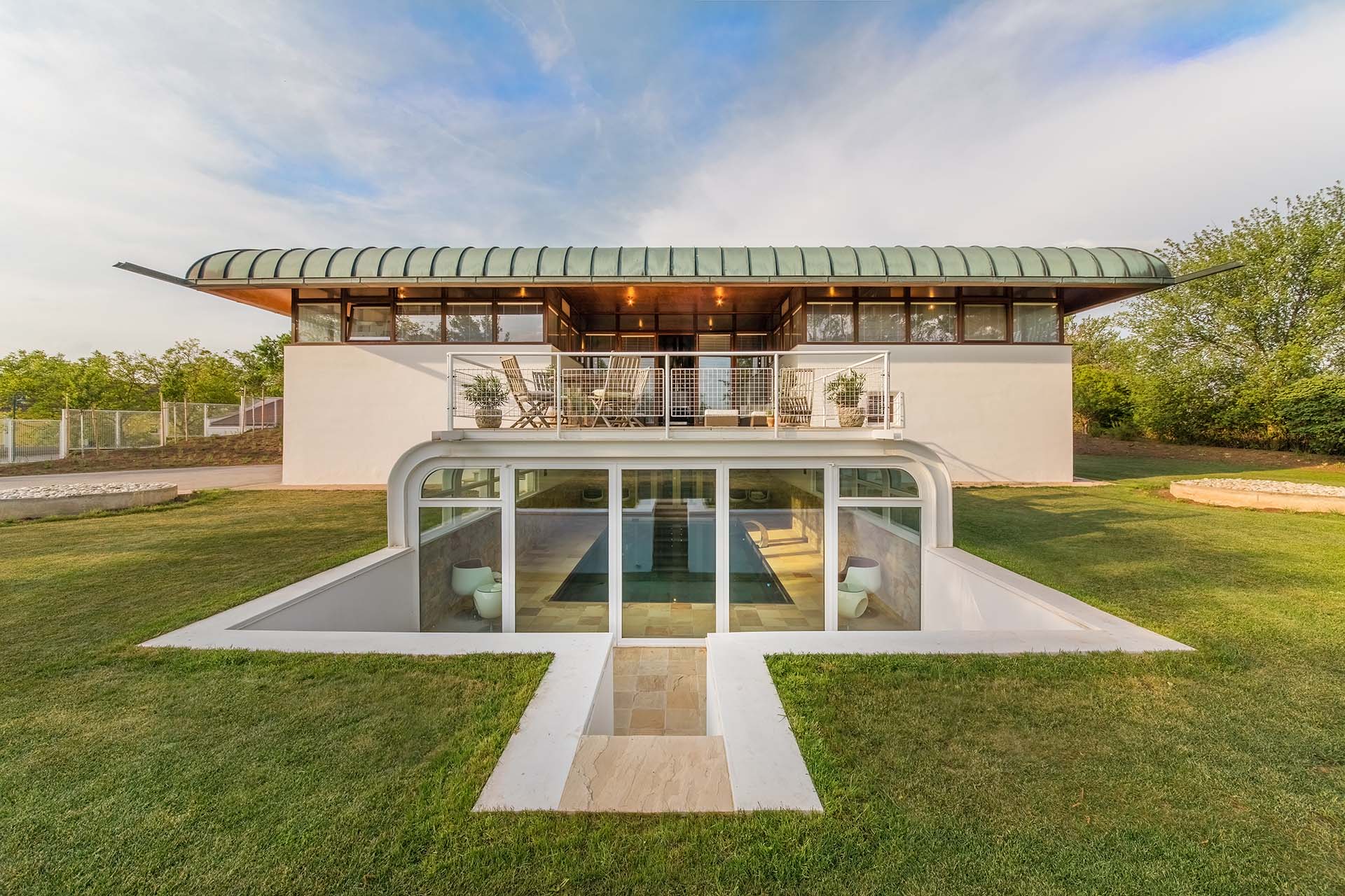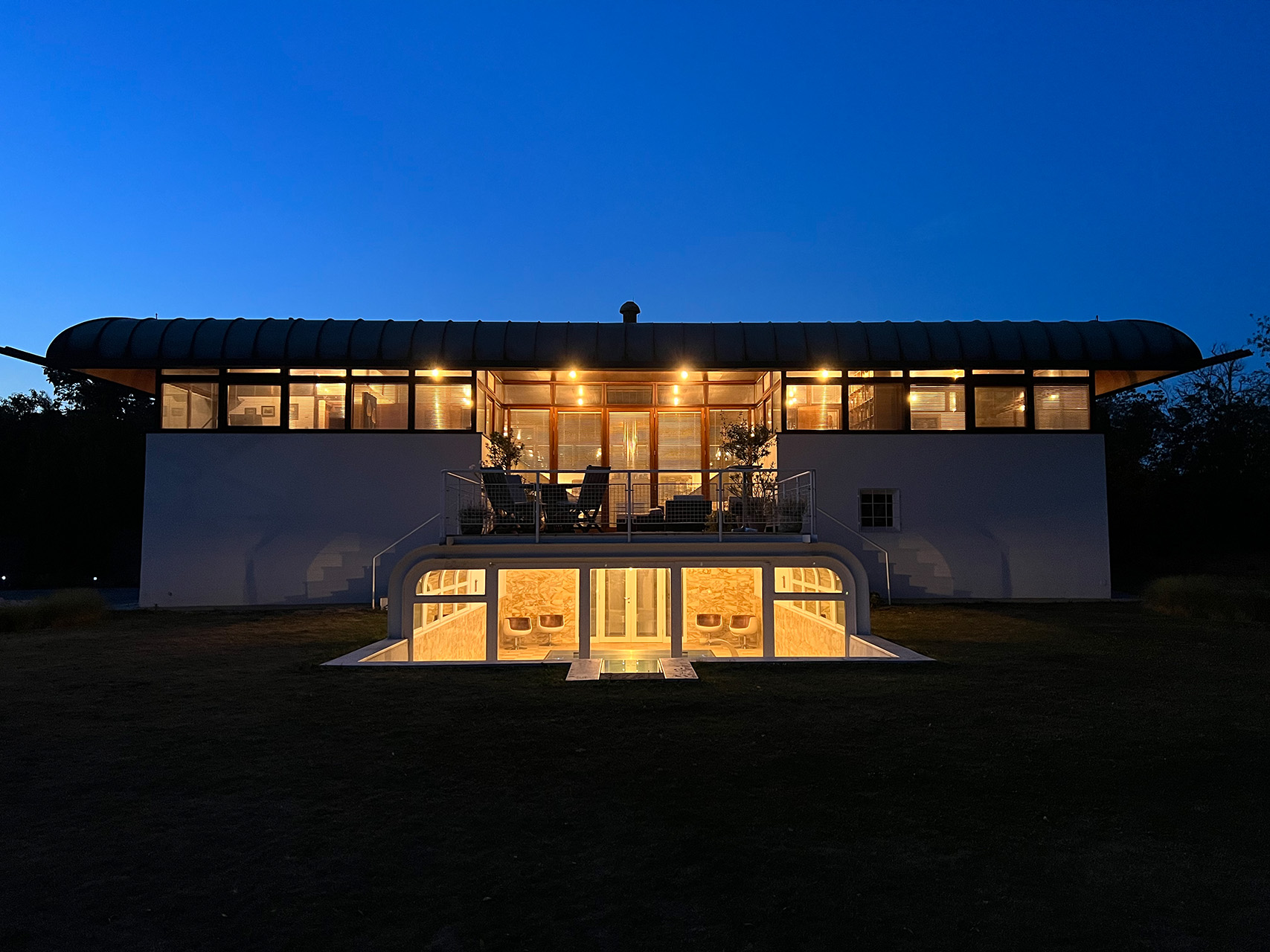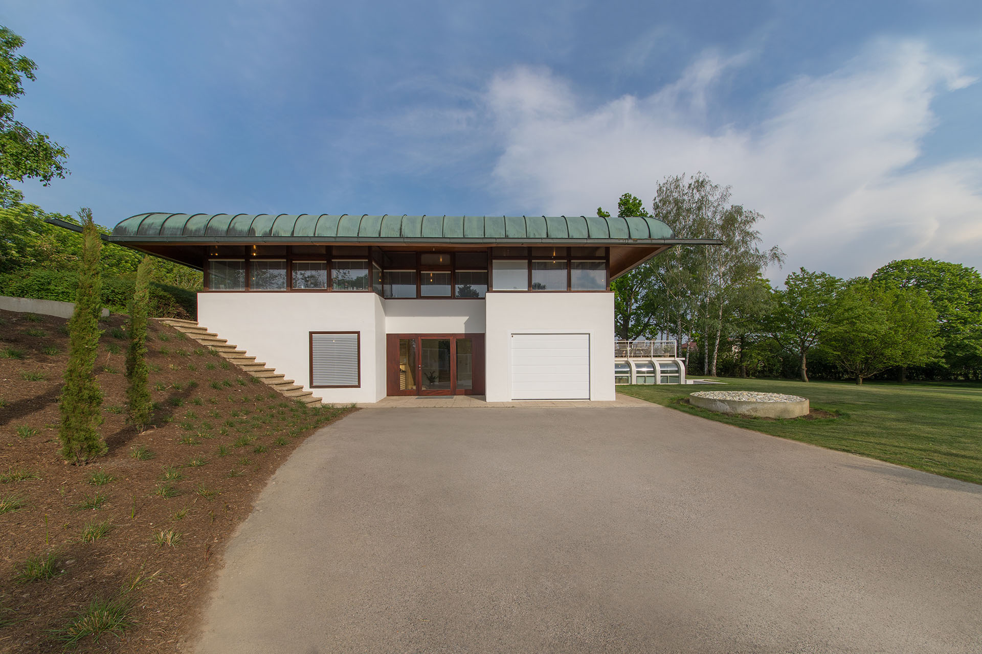 Bereits beim ersten Anblick erhebt sich das Haus als strahlender, weißer Baukörper über der sanften Hügellandschaft des Kamptales. Das pavillonartige Design und die weitläufigen Glasfronten verschmelzen gekonnt die Grenzen zwischen Innen- und Außenraum. Die beeindruckende Stahl- und Holzkonstruktion des schwebenden Kupferdaches verleiht dem Haus eine faszinierende architektonische Spannung und zelebriert die harmonische Balance aus Stabilität und Transparenz.