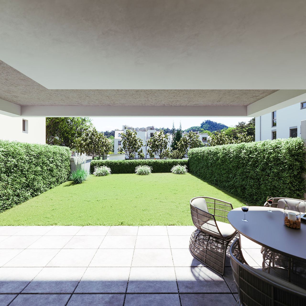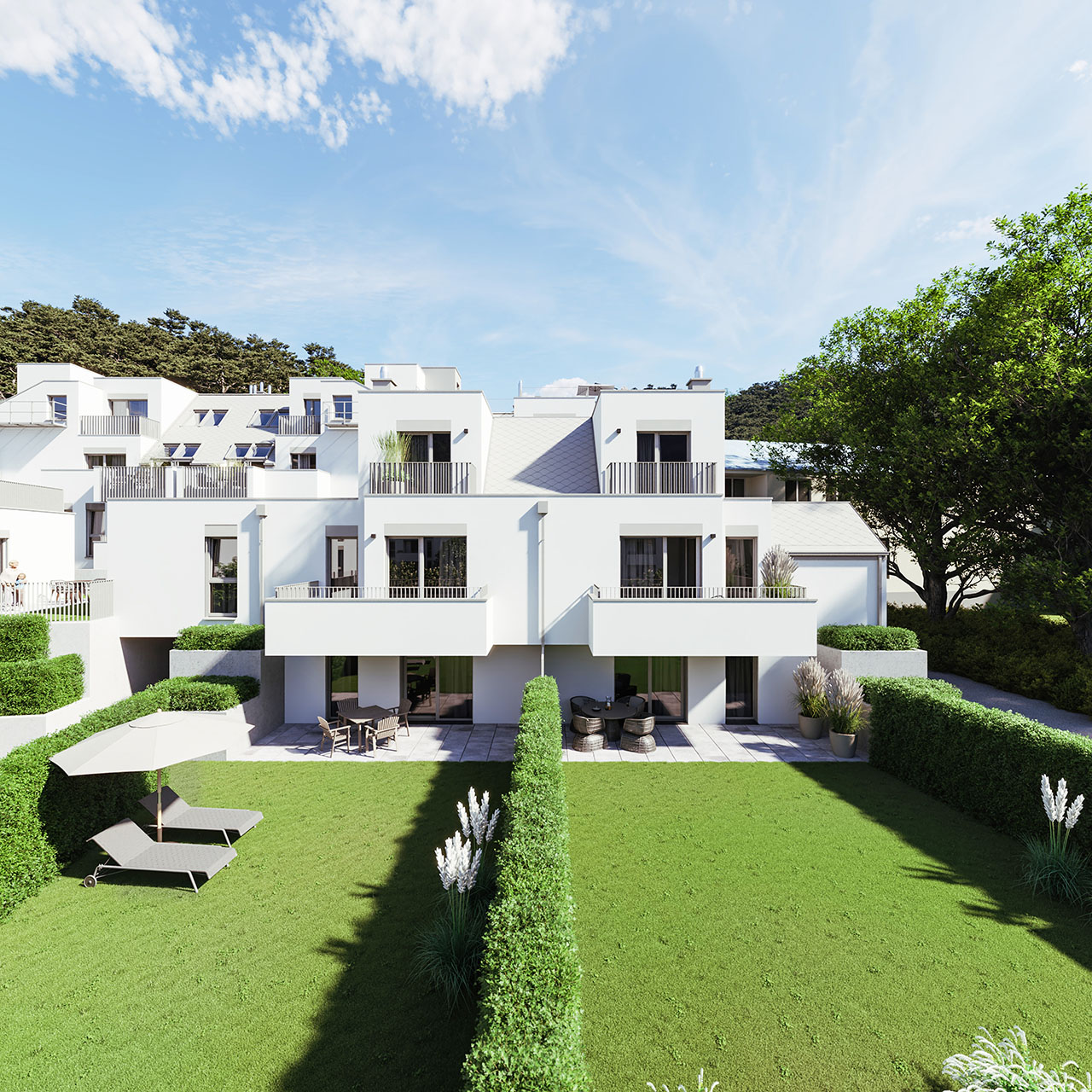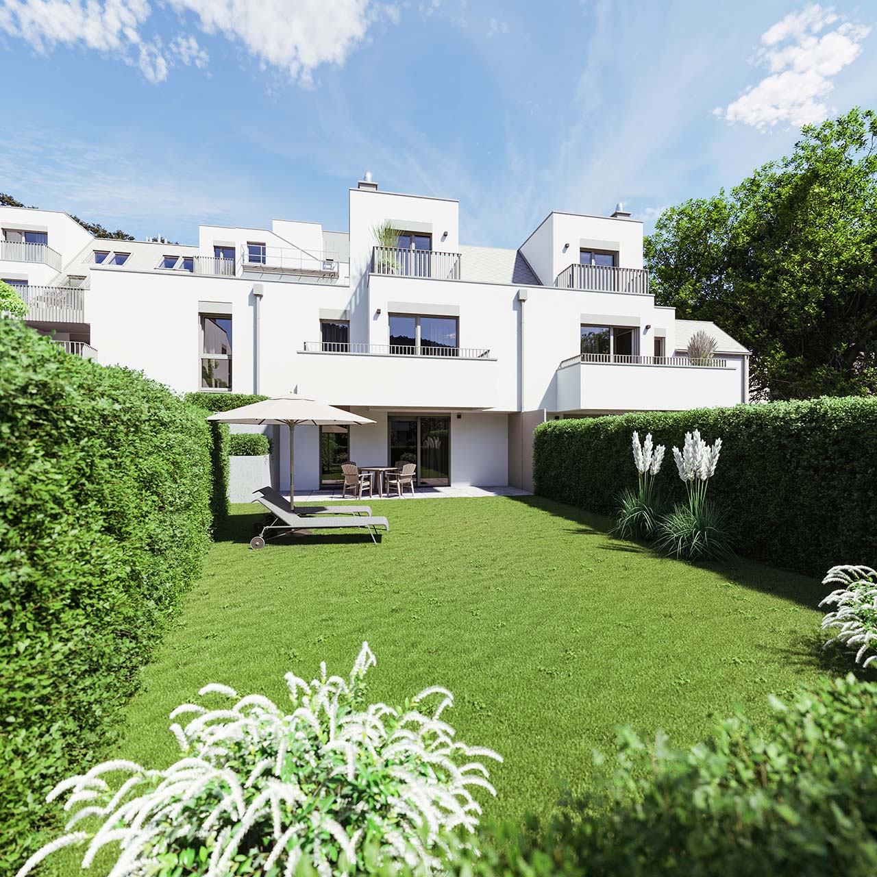 - Freiflächen (große Terrassen, Eigengärten und Balkon) für entspannte Stunden im Freien