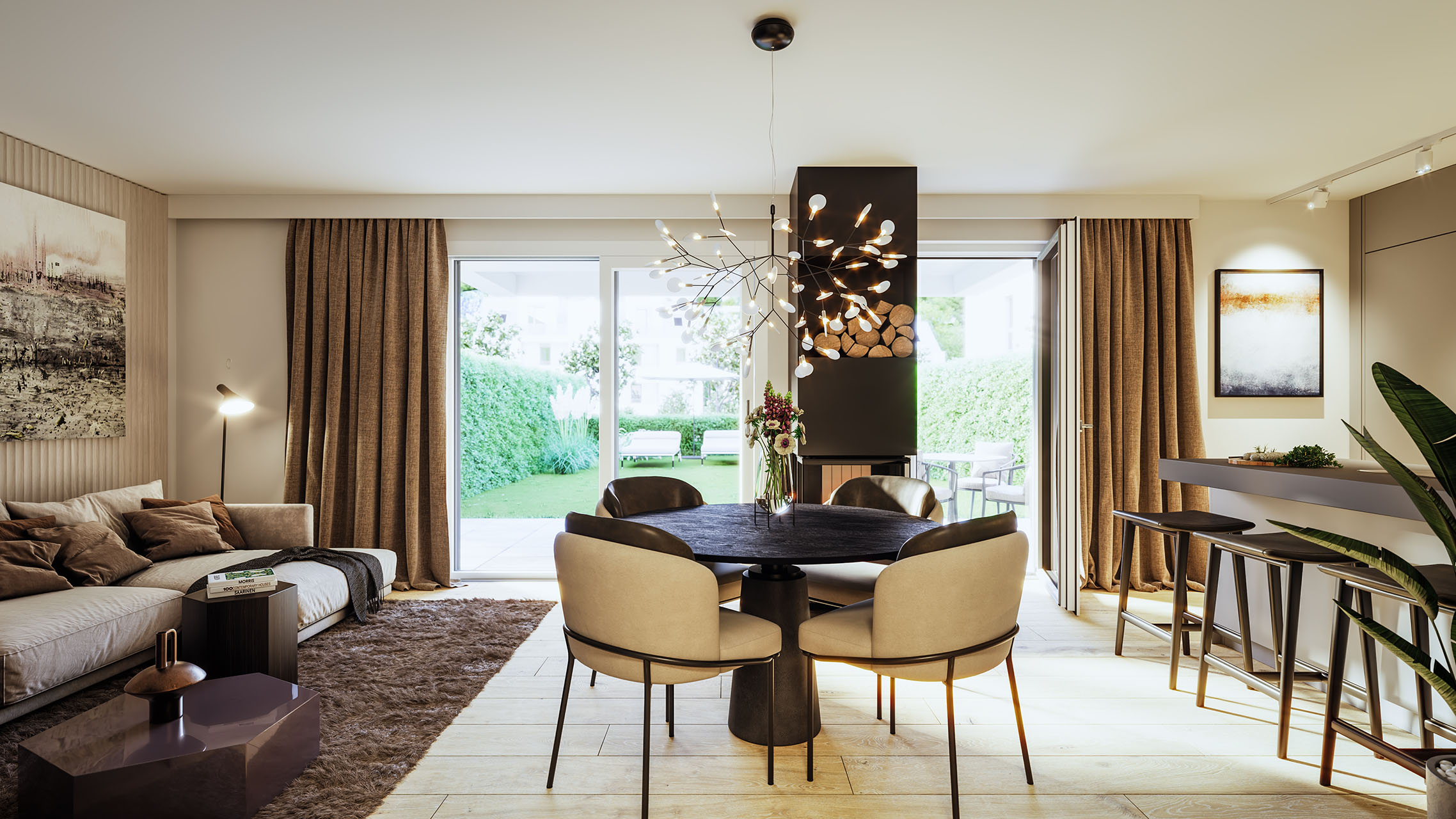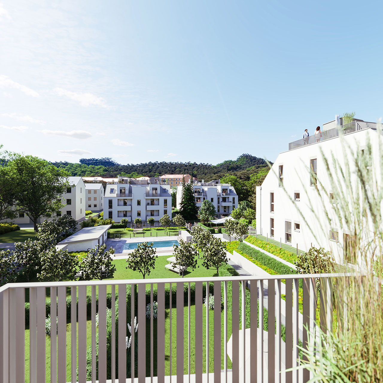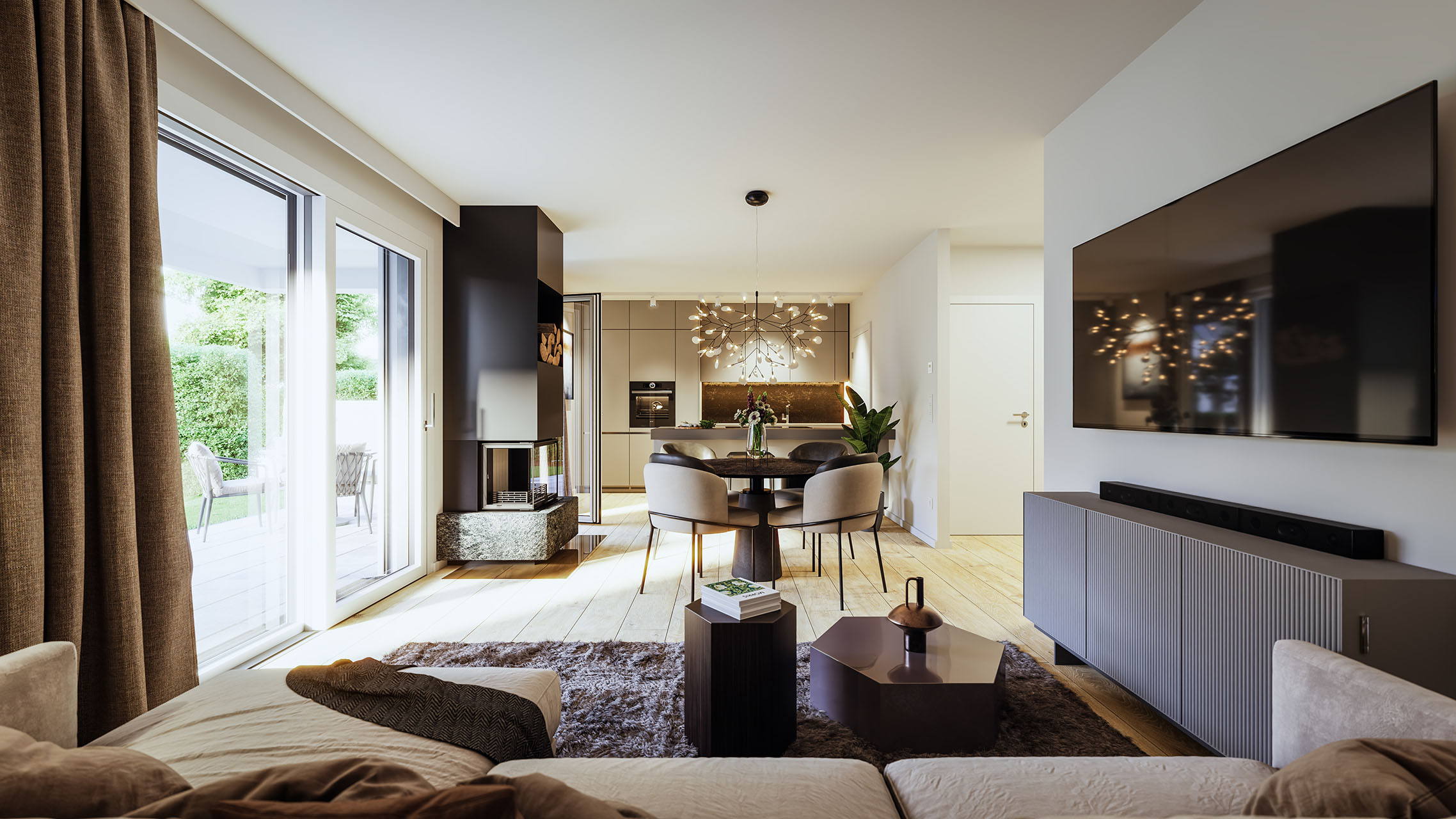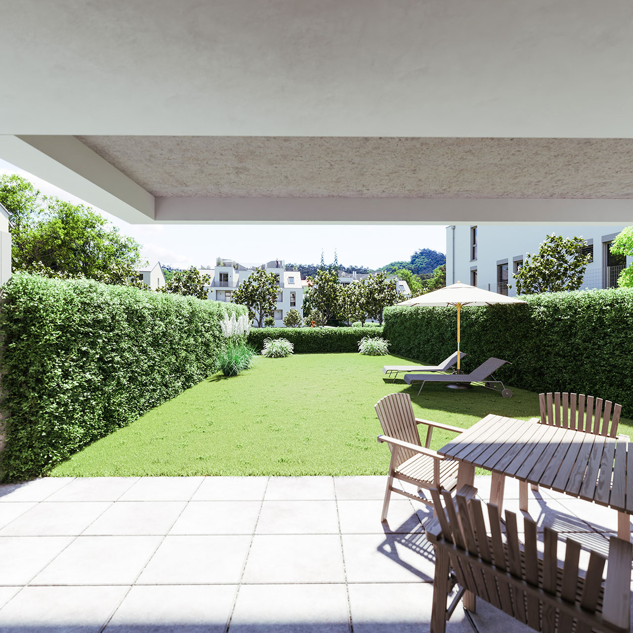 - Freiflächen (große Terrassen, Eigengärten und Balkon) für entspannte Stunden im Freien