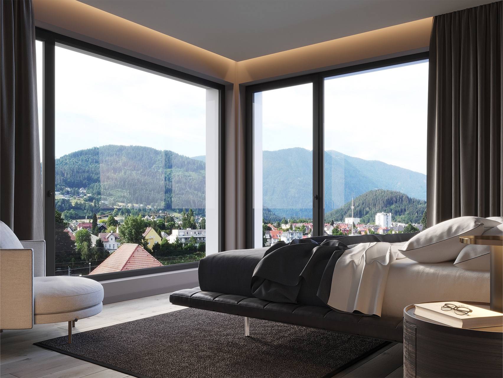 Ruhe & Wellness in Ihrem Penthouse und volle Infrastruktur. Die Penthäuser sind so konzipiert, dass Sie von allen Räumen die Berge und Wälder sehen können.