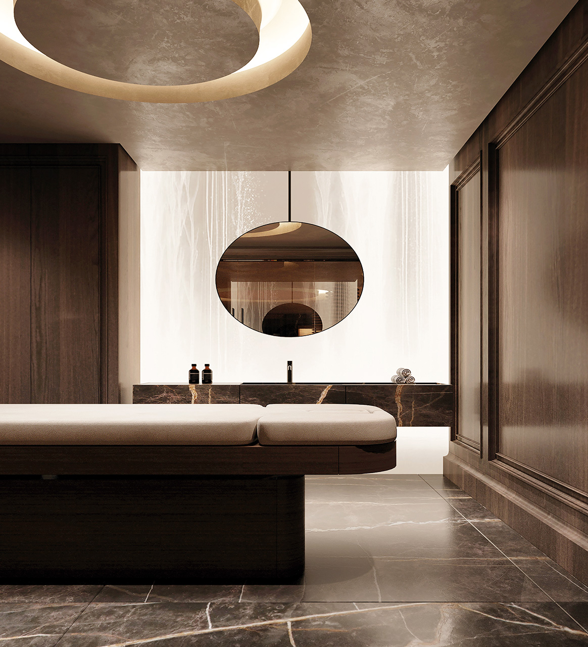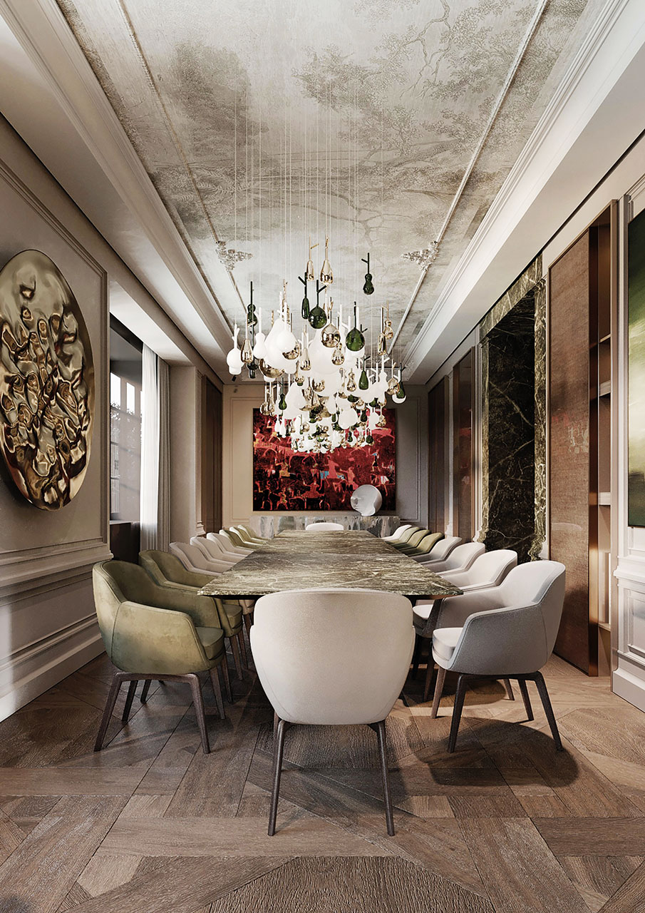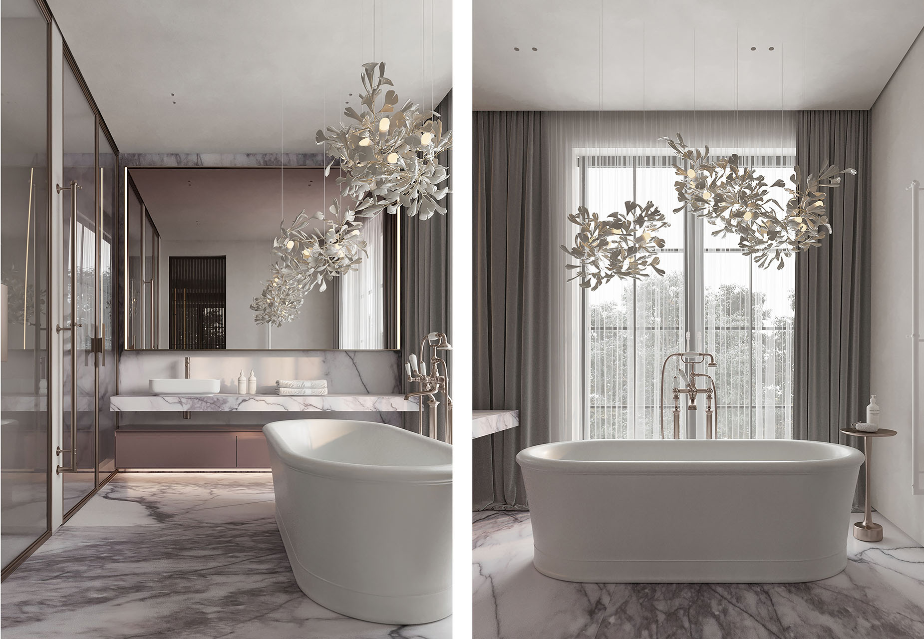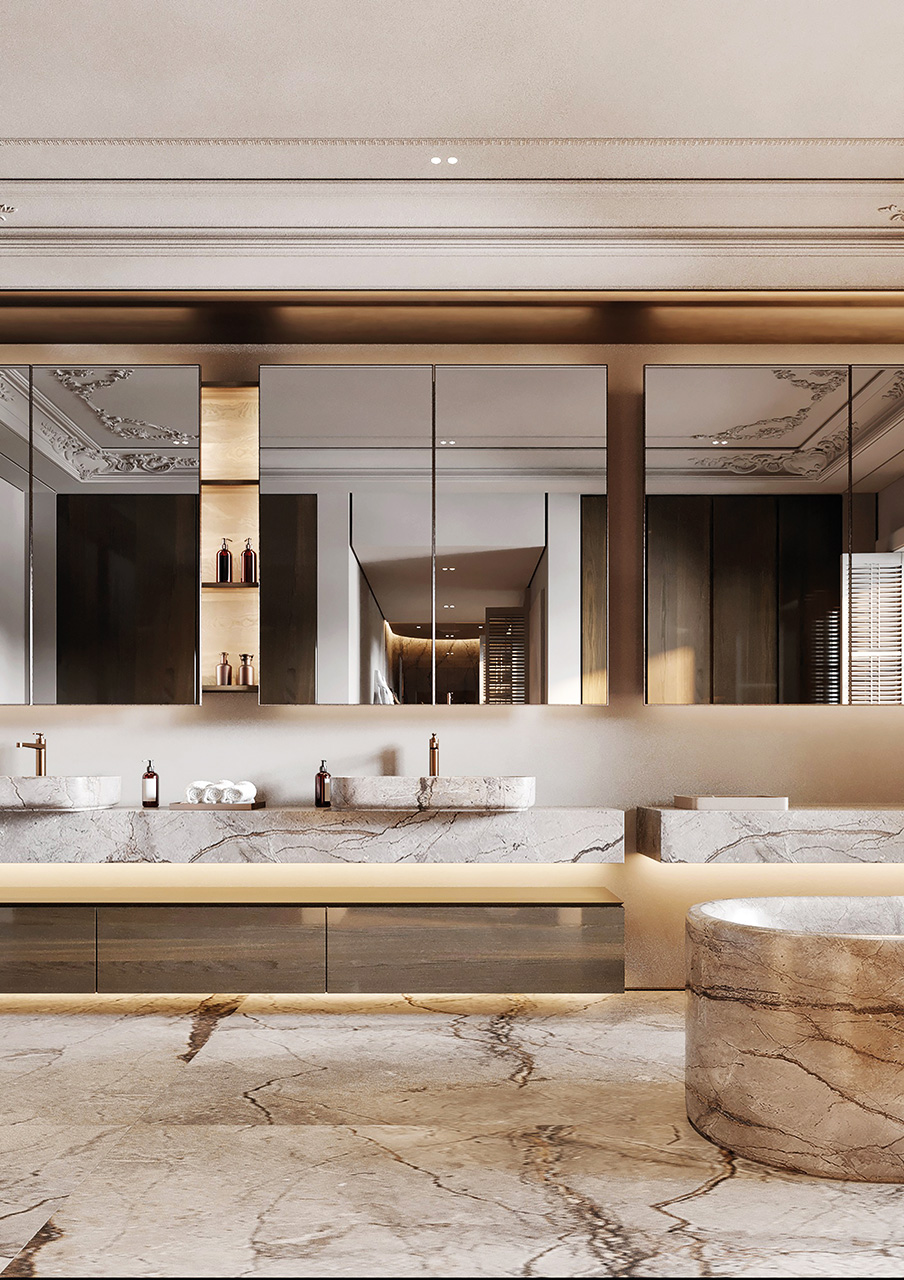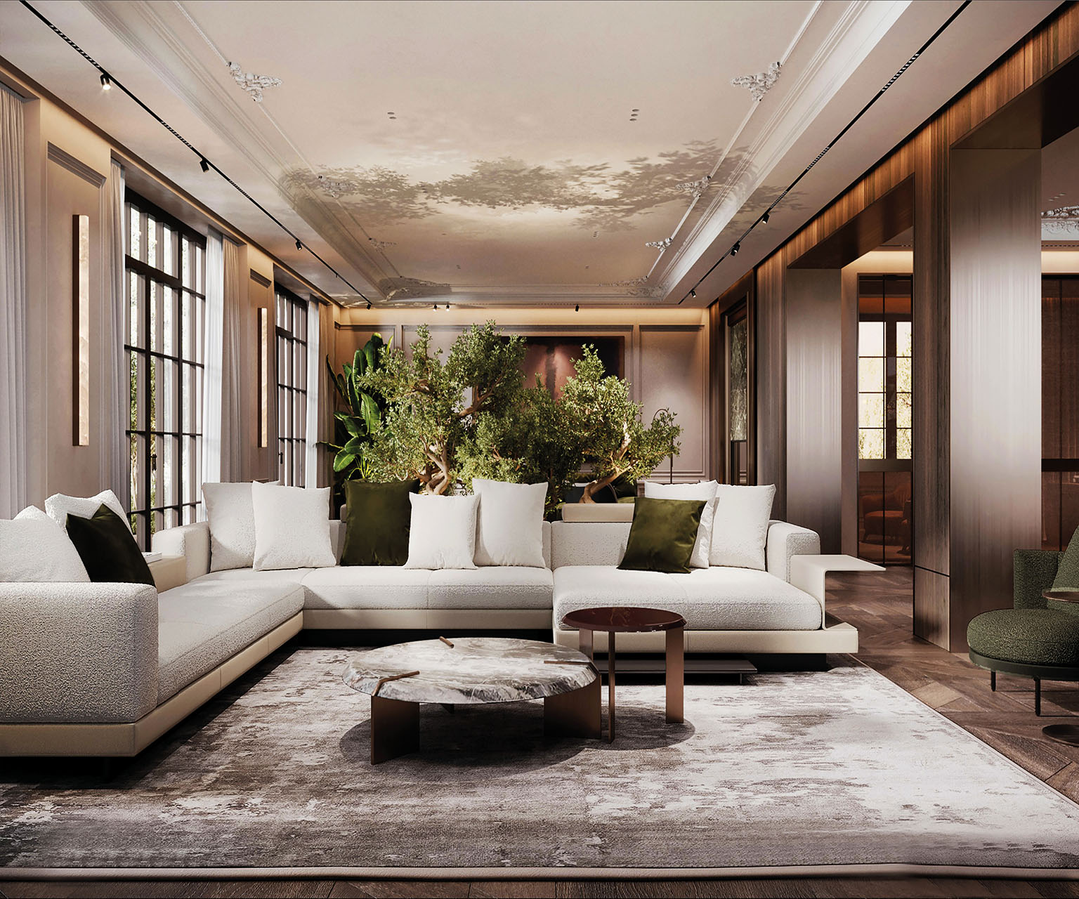 Bereits der erste Blick auf dieses von klassischer europäischer Villenarchitektur aus dem 19. Jahrhundert inspirierte Meisterwerk bleibt in Erinnerung. Die in Handarbeit ausgeführte, neoklassizistische Fassadengestaltung und die Verwendung hochwertigster Materialien sowie kunstfertige Details vermitteln die Grandezza längst vergangener Tage.