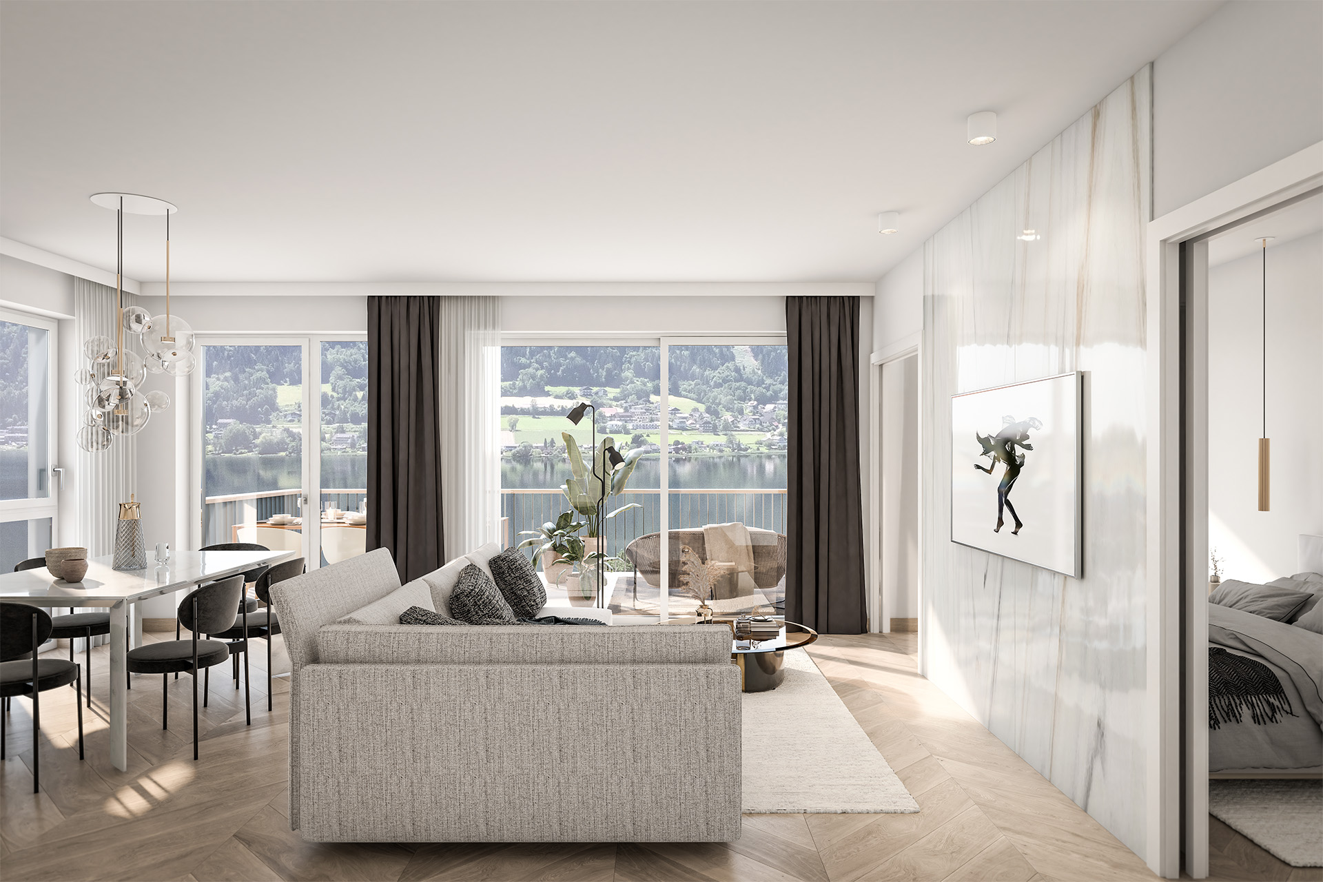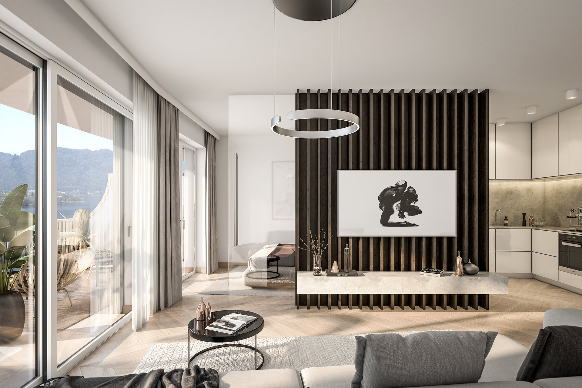 Die Apartments überzeugen mit Ihrem Seeblick, Ihrer besonderen Sonnenlage und Ihren einmalig großen Sunset-Terrassen, welche fast alle Richtung Süden ausgerichtet sind. Die dadurch lichtdurchfluteten Räume und die moderne, offene Raumaufteilung, verleiht Ihnen ein einmaliges Wohnambiente.