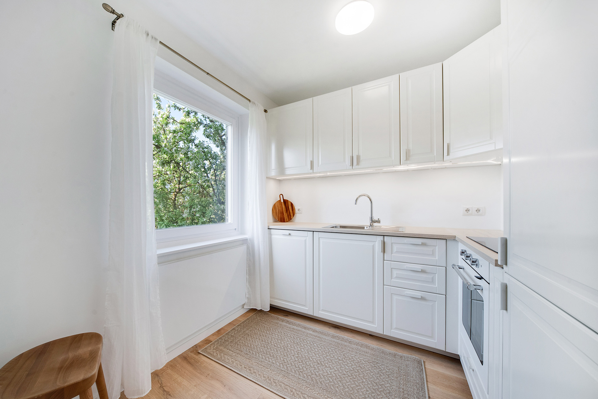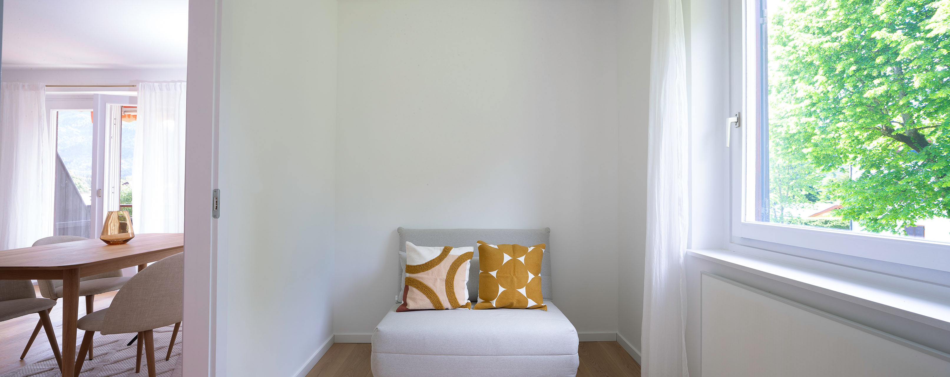 Fenster lassen die Räume in Sonnenlicht baden, während der ca. 10 m² große