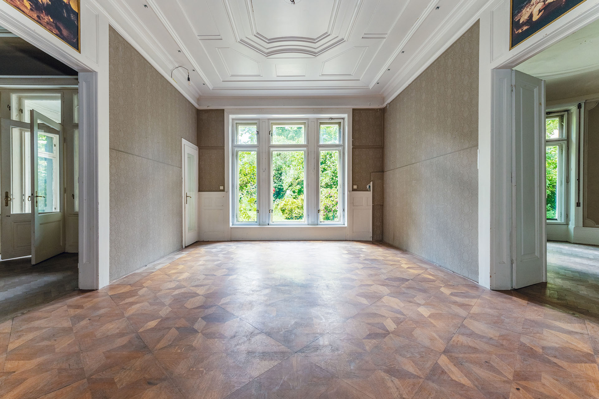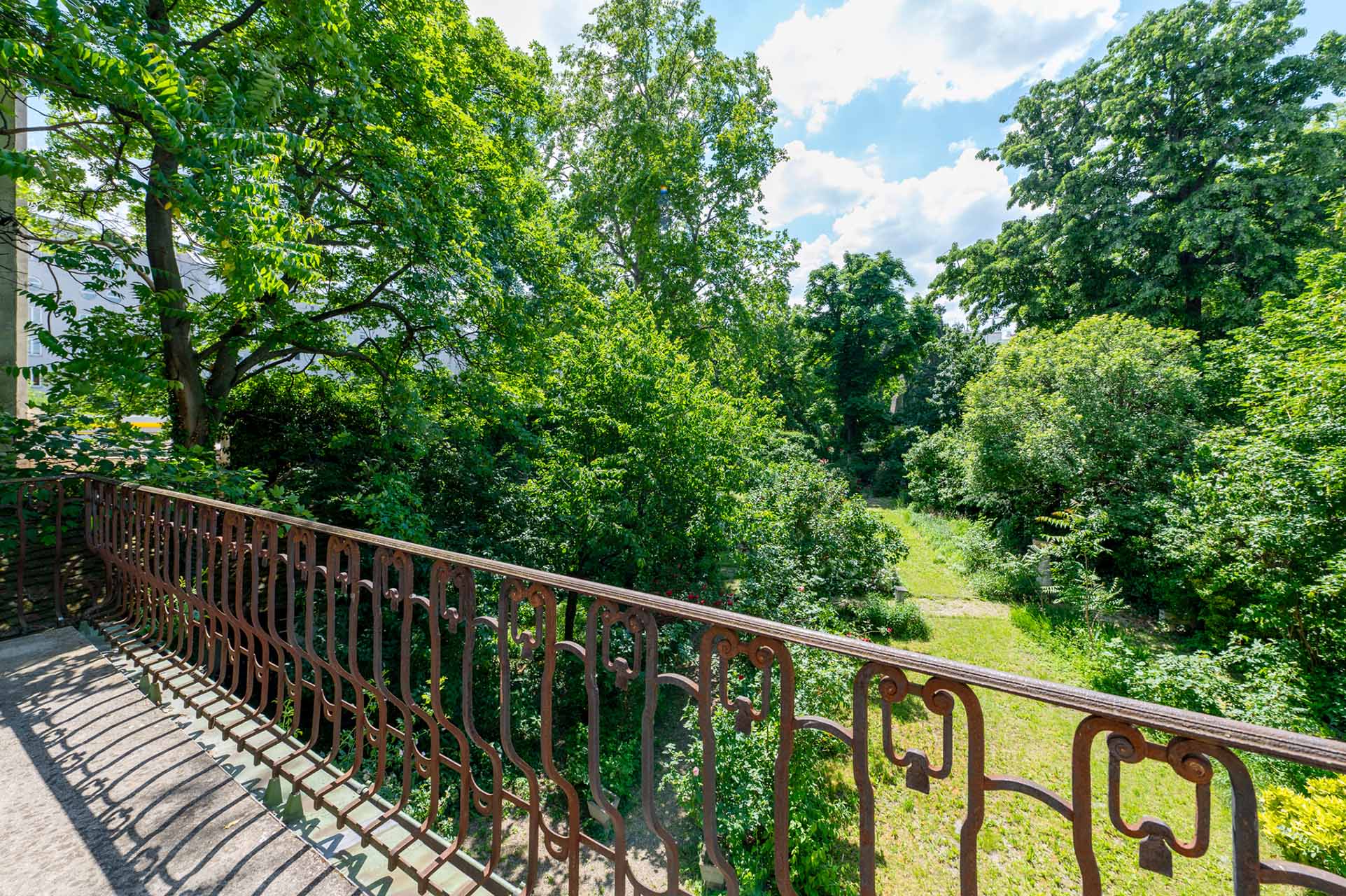 Durch die großzügigen Fenster der Villa sieht man in den tiefgrünen Garten. Wandelt man über das ca. 1.000 m² große Grundstück entdeckt man nicht nur die historische Kegelbahn und einen privaten Swimmingpool, schließt man die Augen vergisst man für einen kurzen Moment, dass man sich in einer Großstadt befindet.Das Palais kann wie erwähnt entweder in seinem aktuellen, unsanierten Zustand erworben werden oder vollständig renoviert vom aktuellen Eigentümer als komplett restauriertes und maßgeschneidertes Meisterwerk gekauft werden.